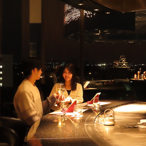 窓一面に広がる熊本市街と熊本城の景色を、朝からディナーまで楽しめる解放感ある空間を提供。THE MOMENT LUXEでは、馬蹄をイメージした鉄板焼きカウンターで五感を楽しむ至極の料理を堪能できます。THE MOMENT EXCLUSIVEは、会議やお祝い事に最適なプライベートルームで、併設テラスからの眺望も楽しめます。