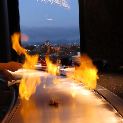 熊本城を間近に望む馬蹄をイメージした鉄板焼きカウンターが特徴の空間は、阿蘇山を彷彿とさせる美しい景観を楽しめます。五感で感じるお料理が揃い、特別なひとときを演出。新鮮な食材と卓越した技法を駆使した料理を存分にご堪能ください。心に残る体験が待っています。