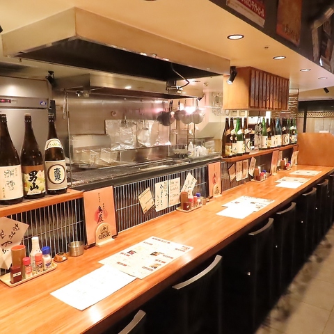<カウンター10席> 隠れ家的な雰囲気が漂う落ち着いた空間です。おひとり様からご宴会まで幅広いシーンでご利用いただけます◎お気軽にご来店ください!