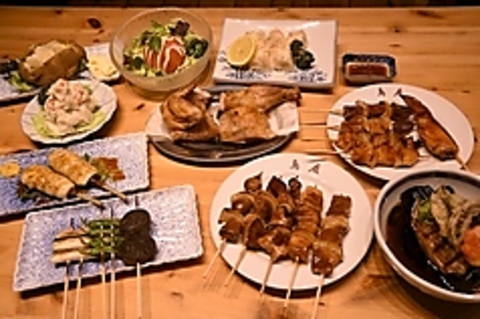 ぶた、とりの焼き鳥から串焼きなど種類豊富なメニューがお楽しみいただけます!「若鳥半身から揚げ」など揚げ物も自慢です!他にもさっぱりとした豆腐料理や丁寧に焼き上げた焼き物、定番の居酒屋メニューなど飽きのこない充実ラインナップ!お好みのお酒と一緒に満足するまでご堪能ください♪