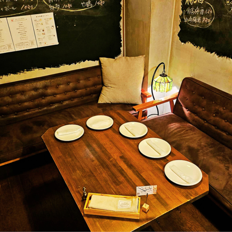 ゆったりとしたスペースが魅力の5名様まで座れるソファー席がございます!カップルや家族連れでのお食事にオススメです♪落ち着いた色味の内装と相まってリラックスしてお過ごしいただけます♪