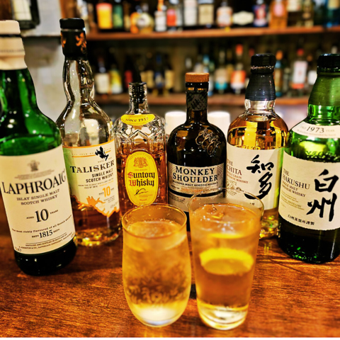 ウイスキーは国内外の人気銘柄を種類豊富にご用意しております☆お好きな割り方でお楽しみくださいませ♪
