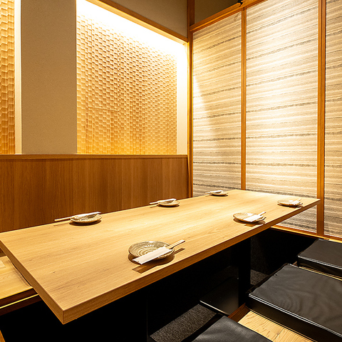 【5~8名様完全個室(掘りごたつ)】デザイナーが手掛けた落ち着いた大人空間◆掘りごたつ席は、記念日・誕生日会、デートや会社の仲間内の飲みにもご利用頂けます。当グループの自慢の空間作りはお客様のニーズに答えます。接待、合コン、歓送迎会にも最適な個室です。
