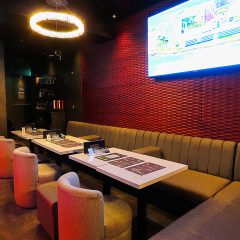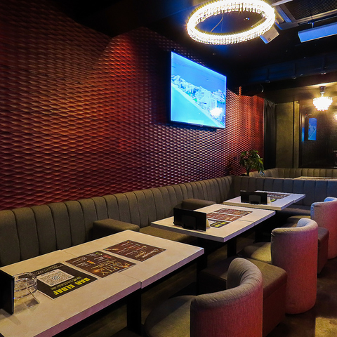 【店内全席喫煙可能◎貸切宴にぴったり◎】全日全時間帯可能!完全貸切が可能です! 設備も整っており、各種ご宴会や2次会にぴったり!黒と赤を基調としたお洒落でムーディな空間で満足感◎