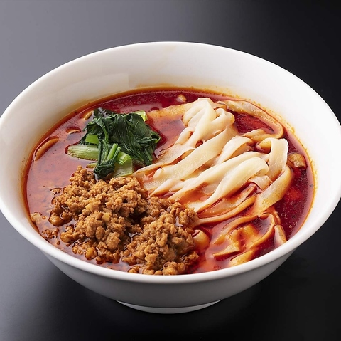 幅広モチモチの刀削麺に、15種の四川香辛料を合わせた自家製麻辣ダレと、店内で練り上げる濃厚胡麻ペーストを豪快に絡めた“汁なし”担々麺。痺れる花椒の香りと胡麻のコクが幾層にも広がり、後を引く辛さで箸が止まりません。追い花椒で旨痺れ増しもおすすめ!
