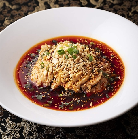 棒棒鶏が主流だった1995年、赤坂1号店で日本初披露。本場四川で学んだレシピを基に香辛料の配合を数百回改良し、香りとコク、痺れを極めました。名前通りよだれ必至、食文化の架け橋と称される逸品です。テレビでも度々紹介され、多くの食通を虜にしています。残ったタレはご飯に絡めるのが通の楽しみ。是非お試しを!