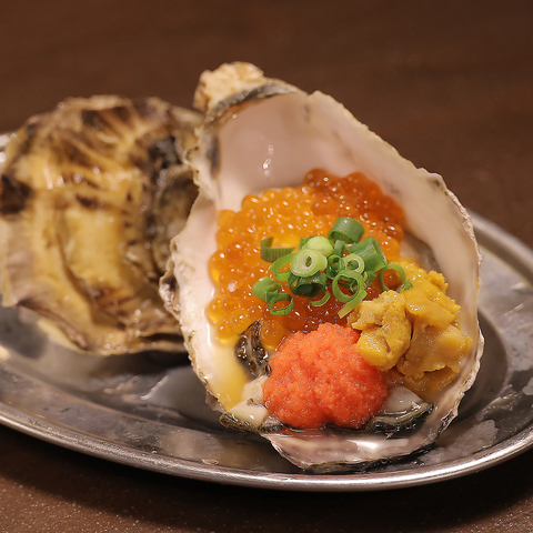 産地直送の新鮮すぎる牡蠣メニューです!牡蠣と明太子・雲丹・いくらが絶妙にマッチし、お酒とも相性抜群の一品です!