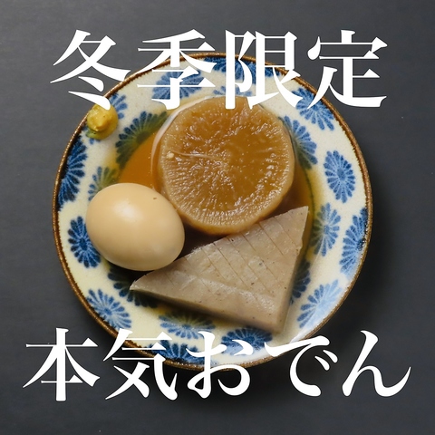 【本気のおでん、登場】無農薬野菜とブランド鶏「純輝鶏」の旨味が溶け合う、心に沁みるおでんです。昆布・いりこ・かつおを丁寧に煮出した天然出汁は、化学調味料一切不使用。素材本来の澄んだ香りと深いコクを、最後の一滴までどうぞ。大根/玉子/こんにゃく/手羽先/つくね/焼き豆腐