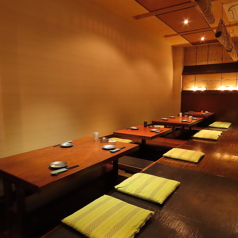 【木の温もり感じる落ち着きある空間】あたたかみのある雰囲気の当店では、掘りごたつ席や個室が完備され、落ち着いた時間を楽しむことができます。長テーブルの掘りごたつ席もございますので、大人数の宴会にも対応可能です。みんなで一緒にテーブルを囲めば話が盛り上がること間違いなし♪各種宴会でぜひご利用ください!