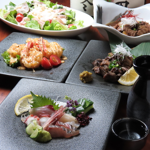 小鉢やサラダ、唐揚げなどの定番料理に大人気の刺身盛り合わせや馬刺し盛り合わせなどがついたお得なコースを各種ご用意しております!もちろんコースには生ビール込みの2時間飲み放題も付いています。平日限定のコスパ抜群のコースもございますので、ご友人とのお食事や会社でのお集まりなど、各種飲み会におすすめです★ぜひご利用ください!