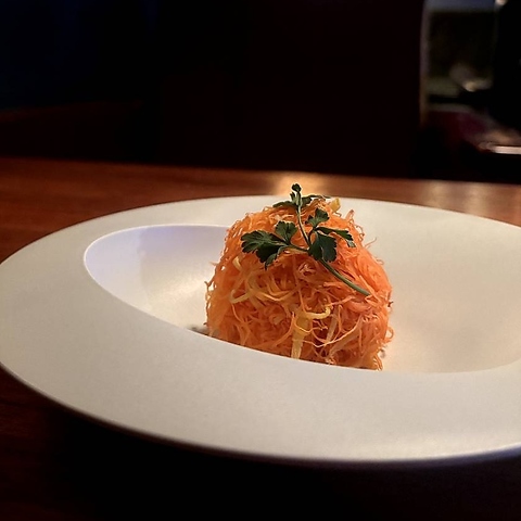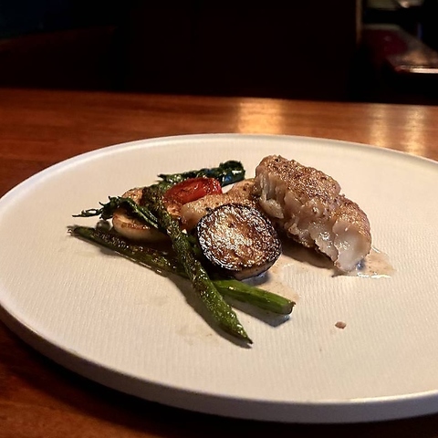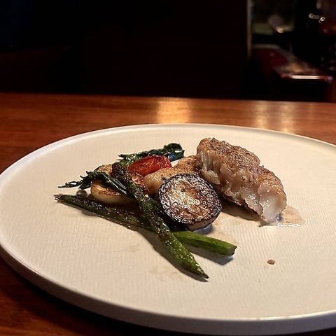 その時々に合わせたお魚を使用し、表面は香ばしく身はふんわりと焼き上げました。素材の持ち味を損なわない火加減で仕上げる一皿は、多くの方に愛されています。彩り豊かな盛り付けと共に、時期ごとに変化する海の幸を存分にご堪能ください。