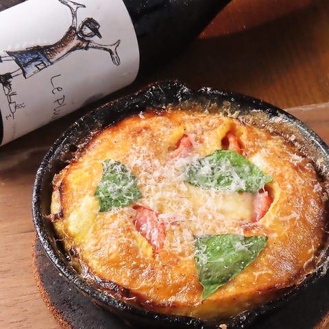 コク深い地養卵と、塩気の利いた生ハムを贅沢にトッピングした自慢のピザです。とろ~りと溢れ出す黄身を生地に絡めていただけば、口いっぱいに幸せな調和が広がります。ワインのお供にも外せない、当店自慢のメインディッシュです。