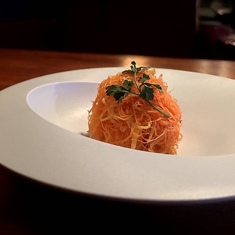 その時々に合わせたお魚を使用し、表面は香ばしく身はふんわりと焼き上げました。素材の持ち味を損なわない火加減で仕上げる一皿は、多くの方に愛されています。彩り豊かな盛り付けと共に、時期ごとに変化する海の幸を存分にご堪能ください。