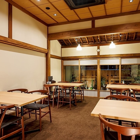 人数に合わせてお使いいただける、居心地の良い和モダンな空間です。ランチや会社帰り・友人会などにも使いやすいテーブル席をご用意しております。また、バリアフリー対応しておりますので、車いすのお客様でもお気軽にお食事をお楽しみいただけます。