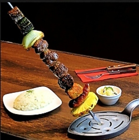 ブラジル風本格BBQ《シェラスコ専門店》!大きな塊の牛肉、豚肉、鶏肉などを串に刺し、岩塩でじっくりと焼き上げます。焼き上がった肉をテーブルまで運び、お客様の目の前で切り分けて提供します♪女子会や合コン・誕生日のお祝いなど様々なシーンにてご利用下さい。★