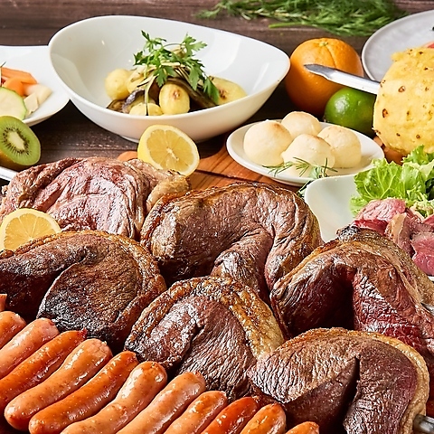 ブラジル式BBQ「シュラスコ」が食べ放題!お客様の目の前でお好きな量の焼きたてでご提供いたします!シュラスコ専門店で修行を積んだ店主がご提供♪食べ放題コース5000円(税込)とコスパ◎様々なシーンでご利用いただけます!