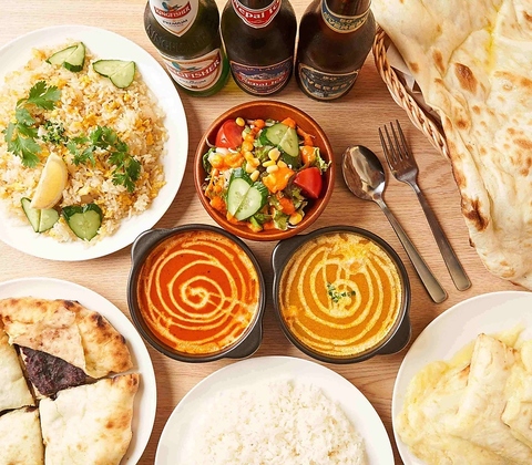 ナンは10種類、サイドもタンドリーチキンやミックスグリルなどボリューム満点◎みんなでシェアも可能です◎