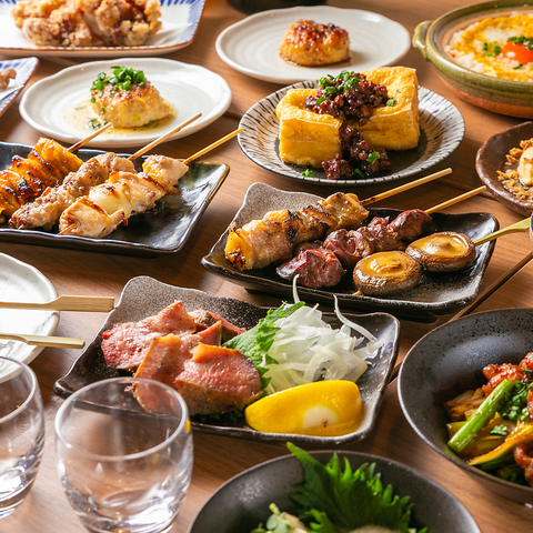 遠赤外線で焼き上げる串焼きは、毎日丁寧に仕込みを行い、旨味を閉じ込めた絶品揃い。茨城ブランドの匠美鶏の焼き鳥は肉の甘味と食感を最大限に引き出します。さらに名物に厚切り牛タンがついた宴会飲み放題付コースをお楽しみください。
