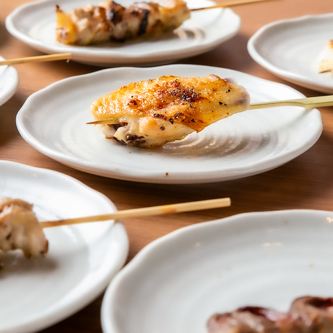 茨城ブランド鶏で旨味がたっぷり、きめ細かな肉質と歯ごたえのある食感が特徴の「匠美鶏」の焼き鳥をどうぞ
