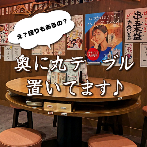 ◇え?座りもあるの?◇店内奥には丸テーブルの座り席も完備!丸テーブルっていいですよね!?普通のテーブルと違って端っこが無い!どの人とも均等に話しやすい!賑やかな空間でワイワイ楽しんでいってください!