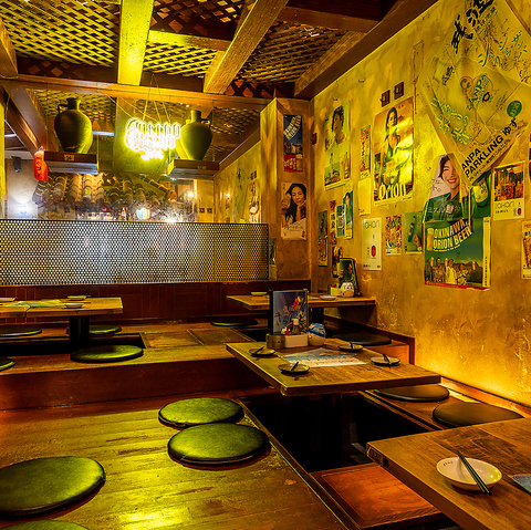 お履き物を脱いでゆったりと。掘りごたつタイプお席は、女子会やカップルなどに人気。単品飲み放題や各種クーポンもご用意しておりますので、お気軽にお立ち寄りください。当日予約も受付しております!