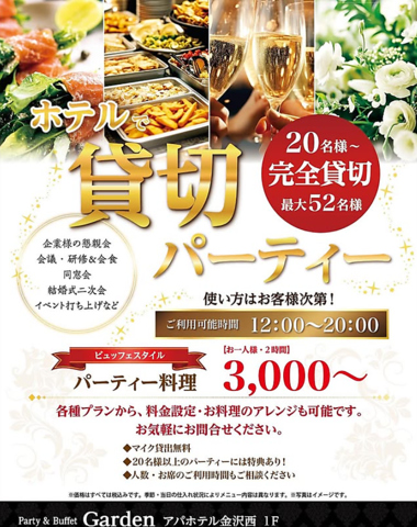 各種プランから、料理設定・お料理のアレンジも可能です!お気軽にお問い合わせ下しさい!