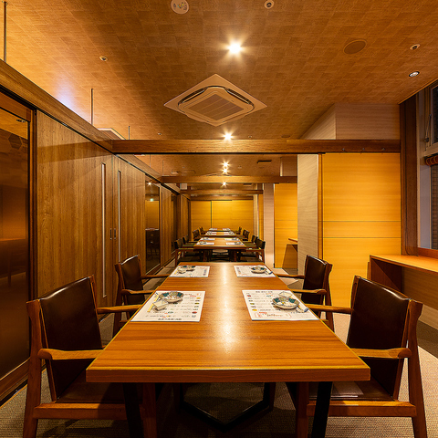 接待や会食向けの個室席も多数完備。お履物を脱がないテーブル個室もあるため、女性でも気軽にご利用いただけます。お席やお料理の下見も承っておりますのでお気軽にお問い合わせください。