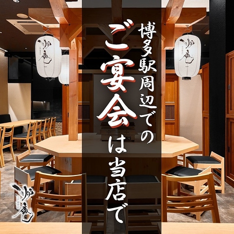 和のこころが息づく個室/半個室で、特別な宴会を。和食の技と繊細な盛り付けが魅力の料理と、厳選された日本酒で、贅沢なひとときをお過ごしください。各種ご宴会にぴったりなお得な飲み放題付コースもございます。飲み会・宴会・合コン・誕生日会・女子会等各種ご宴会には炉庵-Roan-へ!【博多 居酒屋 飲み放題 宴会 個室 半個室】