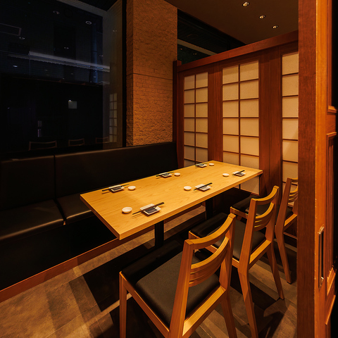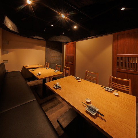 【個室/半個室完備】和モダンながら、居心地の良いカジュアルな店内で、大切な方とのお食事はもちろん、海外のお客様の接待など、様々なシーンでご利用いただけます。様々な使い方ができる和モダンな空間で、ライブ感感じる開放的なテーブル席から個室もございますのでゆっくりとお過ごしいただけます。