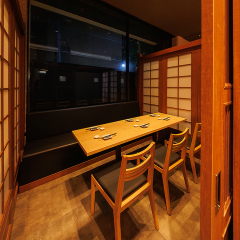 個室【6名様テーブル】小規模な飲み会や宴会におすすめのお席です。雰囲気にこだわったプライベート空間で当店自慢の逸品料理や豊富なドリンクをお楽しみ下さい。日本酒飲み放題が付いた宴会も◎気軽な飲みの場や、宴会にもお使いいただけるお得なクーポンを多数ご用意しております。