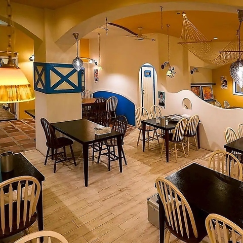 当店の魅力は、なんといっても仲間とワイワイ楽しめるBBQスタイル!南欧を彷彿とさせるお洒落なインテリアの中で、温かい照明が心地よい雰囲気を醸し出します。鮮度抜群のシーフードを使った料理は、どれも絶品!明るいテーブルクロスと茶系のタイルが、食事をより一層楽しいものにしてくれます。ぜひ、特別なひとときをお楽しみください。