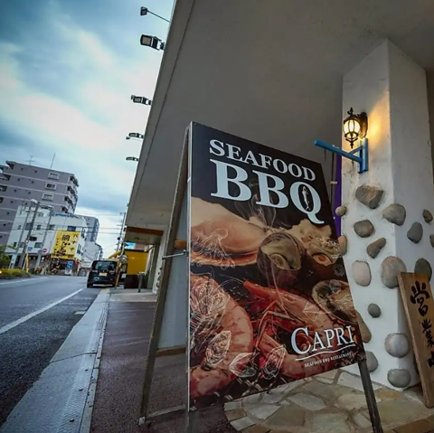 「Seafood BBQ CAPRI」は、新鮮な魚介をBBQとして楽しめるお店!豪快な海の幸を炙って食べる、エンターテインメント性が自慢です☆親しい方々とおしゃべりしながら、自分好みの火加減になるまでお待ちください。もちろん、飲みながら待つのも楽しい♪