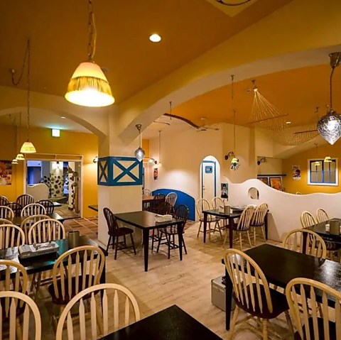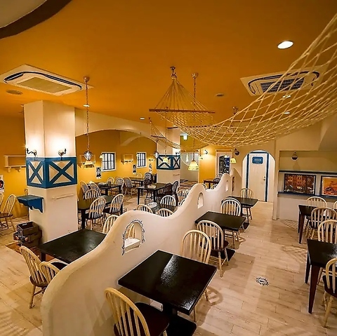 【お子様連れも大歓迎★】当店はお子様連れもOK◎ご家族同士の集まりにも最適な場所です。南欧のような明るく開放的なインテリアと広めのテーブルスペースが特徴で、キッズも楽しく過ごせるお店です♪ 家族ぐるみで、おしゃべりしながら鮮度抜群のシーフードBBQをお楽しみいただけます。ぜひ、お気軽にご来店ください!