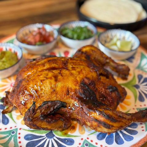 香ばしく焼き上げたスパイシーな鶏肉、彩り豊かなピーマンやタマネギとともにご提供いたします。トルティーヤに包み、チーズやシラントロ、ワカモレなどお好みのトッピングを添えて、自分だけの味をお楽しみください。食欲をそそる本格メキシカンの定番メニューです。付属の自家製ホットソース(サルサ・ロハ)をつけてお召し上がりください。