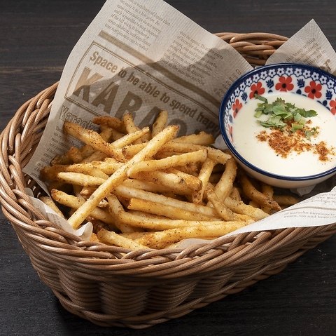 中はホクホク、外はカリッとしたクリスピーポテトメキシカンスパイスが味付けしたポテトをアイオリソースで。