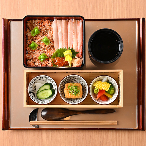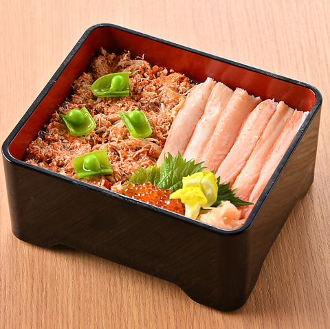 言わずと知れた北陸の海の幸が盛大に入った一品。エビや魚も盛り込みました。本当に美味しい海鮮をお楽しみください。( 酢飯+165円(税込))