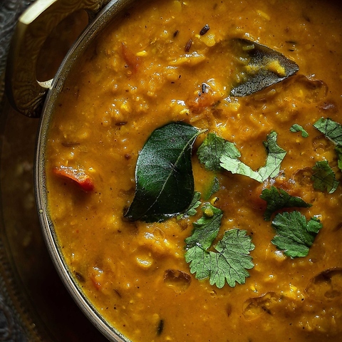 インドの家庭料理として親しまれる「ダルフライ」は、数種類のレンズ豆をじっくり煮込み、バターで炒め、香ばしいスパイスとともに仕上げた贅沢な豆カレーです。クミン、ターメリックなどのスパイスが豊かに香り、口に運ぶたびにやさしいコクと奥深い旨味が広がります。ベジタリアンの方にもおすすめで、ナンやライスとの相性も抜群☆
