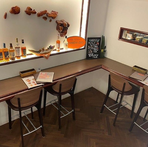 店内は、落ち着いた色合いとおしゃれなデザインで統一されており、リラックスできる空間です♪お1人様でも気軽に利用できるカウンター席や、グループでご利用可能なテーブル席をご用意しております。仕事帰りのサク飲みや、昼飲みにもピッタリです♪パンケーキなどのスイーツもございますので、カフェ利用でもOKです◎
