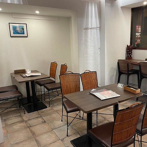 【落ち着いた雰囲気】テーブル席は、落ち着いた色合いのインテリアで統一されており、リラックスできる空間です。