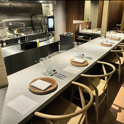 料理が出来上がっていく様子が楽しめるカウンター席。※お一人様500円(税込)の席料を頂戴しております。