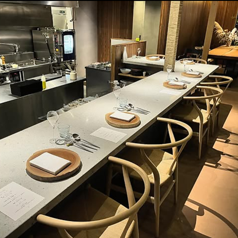 目の前で手早く料理が仕上がっていく臨場感あるカウンター席。ワクワクとときめきを添えて、格別なお食事をご提供いたします。当店は完全予約制なので、いつもよりワンランク上のご褒美ランチ・大切なパートナーとのデート・プチ贅沢女子会など、シーンに合わせてコースをお選びの上ご予約ください。