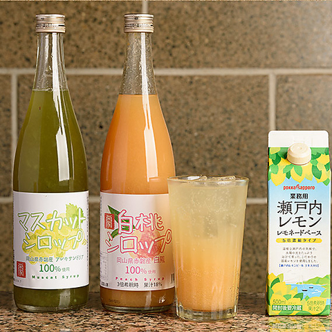 | カクテル | カシスソーダ/カシスオレンジ/カシスグレープフルーツ/カシスウーロン/カンパリオレンジ/カンパリグレープフルーツ/ファジーネーブル/ピーチウーロン/ピーチティクーラー |