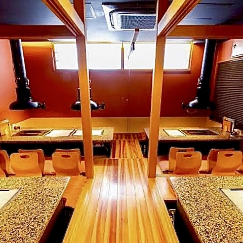 【掘りごたつ個室】落ち着いた雰囲気の掘りごたつ式完全個室を多数ご用意。足を伸ばしてくつろげる空間は、ご年配の方にも好評で、会社の宴会・接待・家族の集まり・デートなど幅広いシーンに対応可能です。陶板焼きの香ばしい音とともに、周囲を気にせずゆったりとした時間をお過ごしください。
