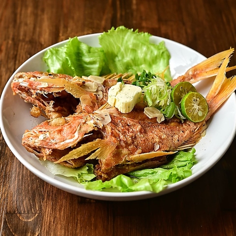 その日に活きのいい鮮魚を丸ごと一匹使用した、見た目も豪快な一皿です。バターの香ばしい香りが食欲をそそり、ふっくらとした身は口に入れるととろけるような柔らかさ。シンプルながらも魚本来の旨みを存分に堪能できる、当店自慢の逸品です。※お値段は日替わりの魚によって変動します。写真は一例です。