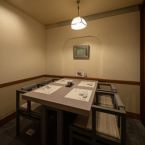 【個室:テーブル】ご接待やご家族でのご会食に最適(4名様~8名様)4名様でのご利用は半個室、5名様以上でのご利用は完全個室になります。