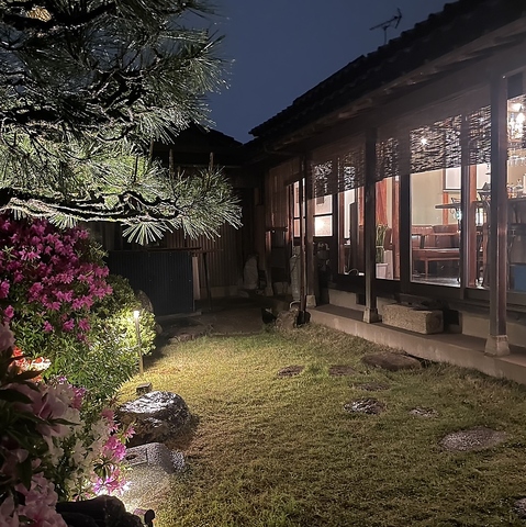 お店から見える日本庭園。季節ごとに楽しめます。夜はライトアップも