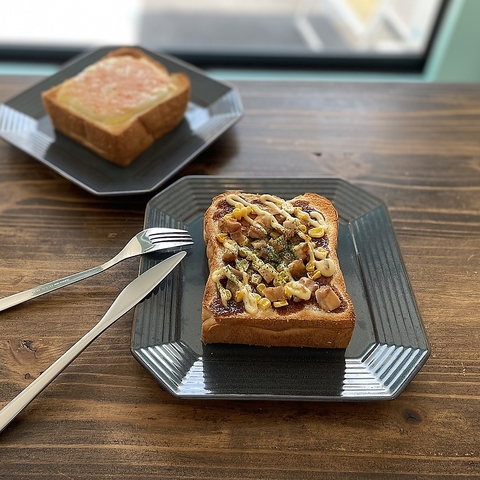 店内でカットしたトーストは、なんと4センチの厚さ。8種類のトーストメニューはボリューム、味ともに大満足◎