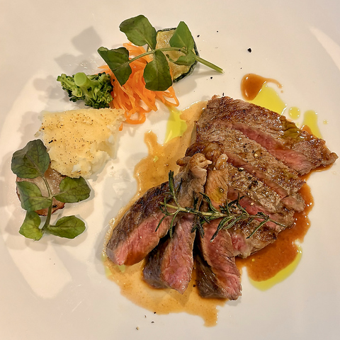 土・日・祝日限定ランチ!肉肉しい食べ応えのあるステーキです。ソースはシェフが1から作った特製のコンソメと醤油で味を調えたものです。ここでしか味わえない1品になっております。ランチセットでのご提供なので(メイン・ライスorバケット・サラダ・ドリンク)が付いております。