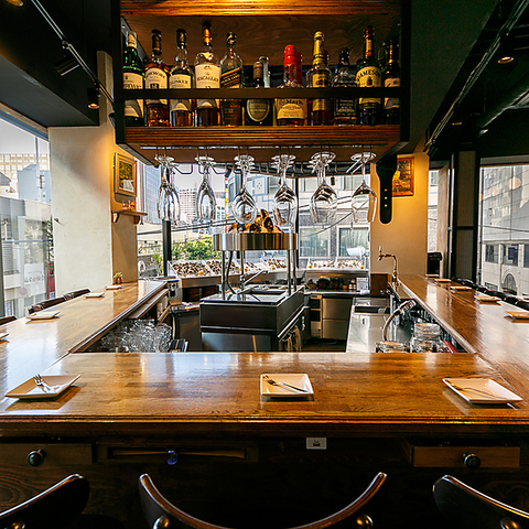活気あふれるオープンキッチンを目の前に、シェフの手捌きを楽しみながらお食事ができるカウンター席です!デートでのご利用にぴったりで、お二人だけの特別な時間をお過ごしいただけます。オイスターとのペアリングもぜひご相談ください♪