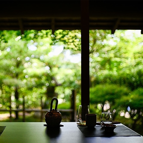 和の内装に合わせて、窓からは自然豊かな景色をご覧いただけます。季節によって変化する窓からの移ろいを感じていただきながら、当店だけの特別なひとときをお過ごしください。